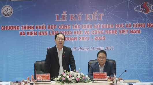 Lễ ký kết hợp tác chương trình giữa Bộ KH&CN và Viện Hàn lâm KH&CN Việt Nam (VAST) giai đoạn 2021-2025 đã diễn ra vào chiều 5/11 dưới sự bảo trì của Bộ trưởng Bộ KH&CN Huỳnh Thành Đạt và GS. Châu Văn Minh, Chủ tịch VAST.