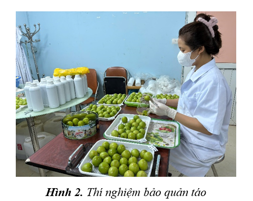 Sau đó, nhóm nghiên cứu tiếp tục khảo sát khả năng ứng dụng dịch lá vối để bảo quản táo. Thành phần màng được lựa chọn dựa trên các nghiên cứu trước đây do nhóm nghiên cứu đã khảo sát là chitosan, gum arabic. Bước đầu nhóm nghiên cứu nhận được kết quả khá khả quan, so với mẫu đối chứng, táo được phủ màng bảo quản cho thấy giá trị về mặt cảm quan cũng như có thời hạn sử dụng lâu hơn. Lớp màng phủ CH/GA bổ sung dịch vối tăng cường đáng kể chất lượng cũng như thời gian bản quản táo lên đến 9 ngày ở nhiệt độ 25±2oC và độ ẩm 65%. Hàm lượng tối ưu khi bổ sung dịch chiết vối là 0,6% cho thấy hiệu quả bảo quản táo của màng thông qua các chỉ tiêu axit, màu sắc, làm lượng đường khử. Lớp màng phủ CH/GA/CE 0,6% trên bề mặt quả táo tương đối mịn và làm chậm đáng kể quá trình chín và giữ lại nhiều hơn tổng hàm lượng axit hữu cơ, đường khử,…của quả táo.