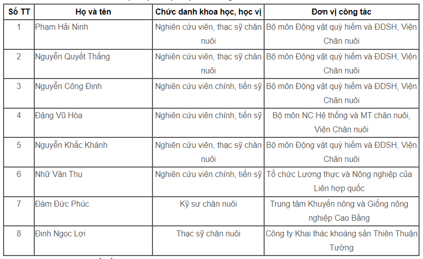 - Tên tổ chức đang công tác: Bộ môn Động vật quý hiếm và Đa dạng sinh học, Viện Chăn nuôi