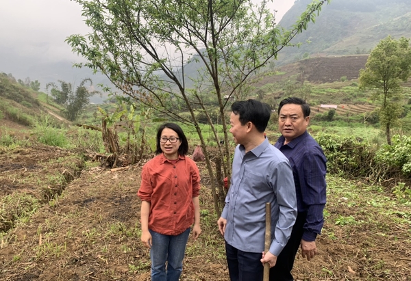 Đồng chí Đỗ Đức Duy trao đổi cùng đại diện Viện Nghiên cứu và Phát triển Vùng về kỹ thuật canh tác trồng khoai sọ nương Trạm Tấu